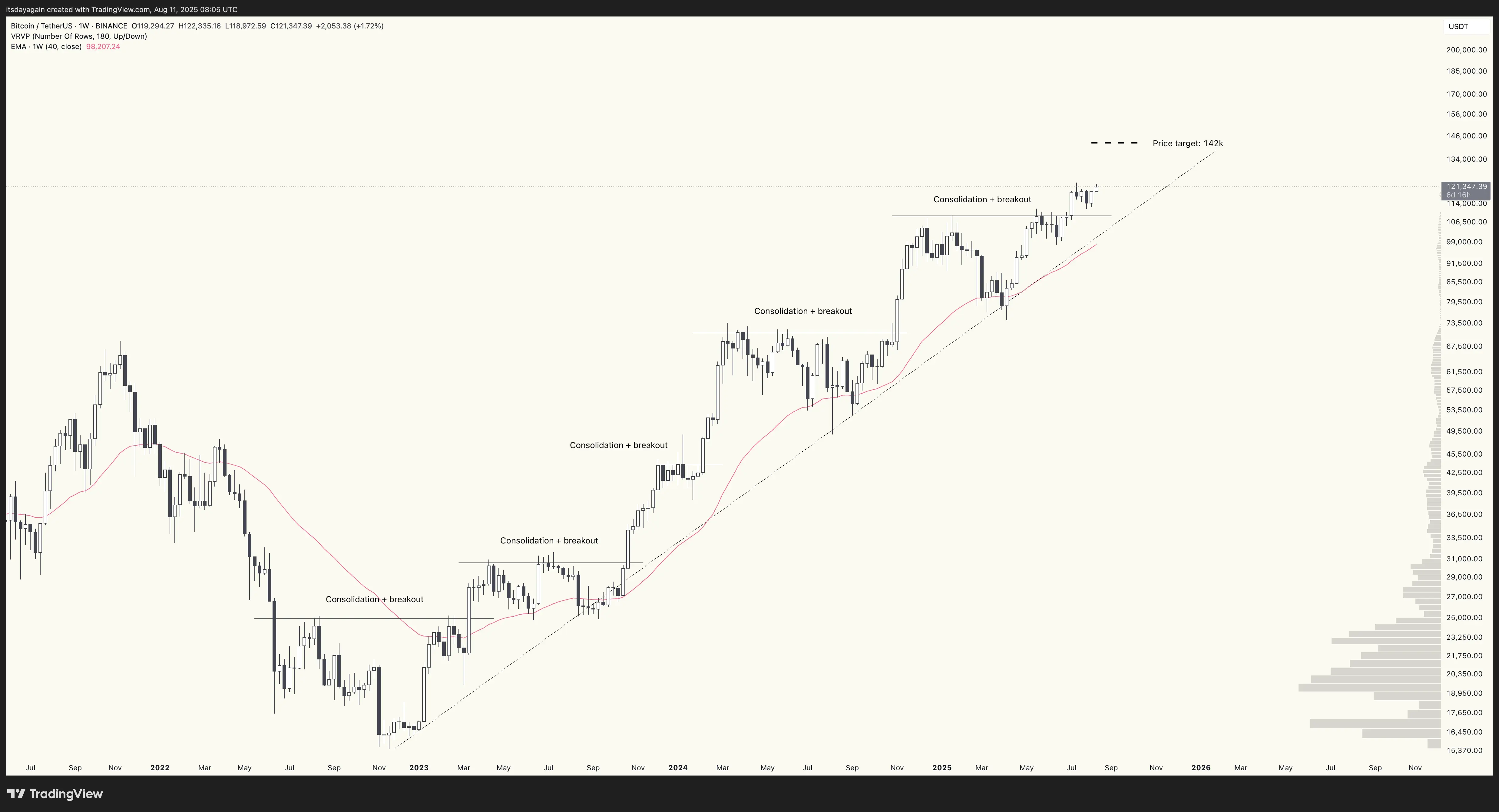 […] The [BTC] breakout has not been invalidated, and the price target remains at $142k. So with that in mind, it’s much too early to call any tops.